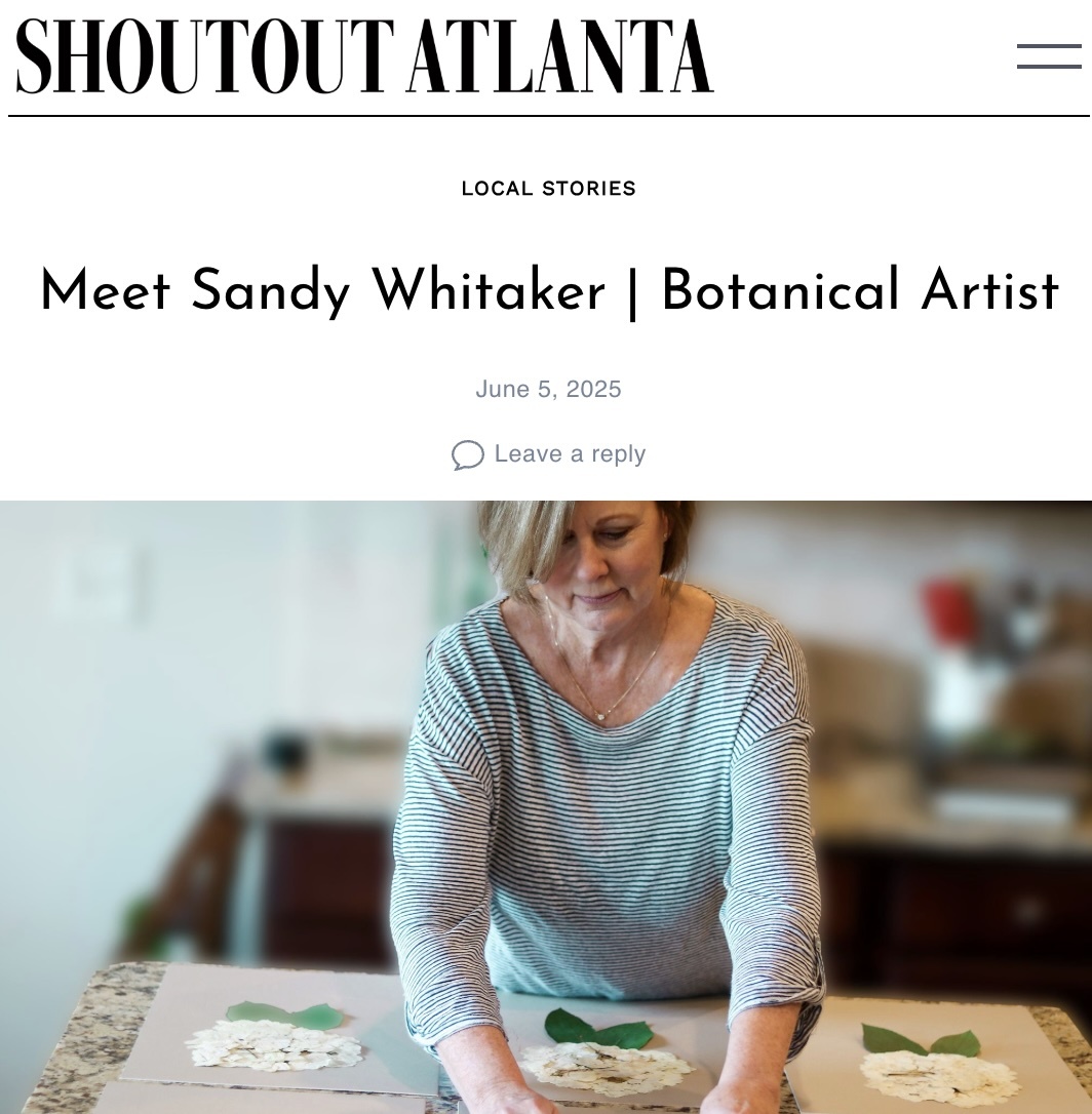 Sandy was honored to be interviewed by Shoutout Atlanta, where she shared the story behind her botanical work, her creative process, and what inspires her most. Read the full interview here.